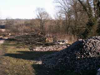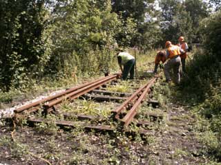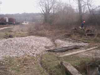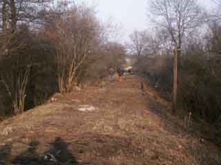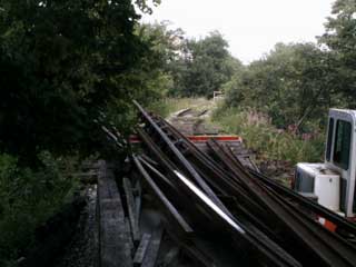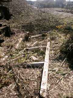 View of clearance work from near buffer stop, which will be relocated to this point and the kickback siding removed to allow access to 1st bridge for rebuilding.