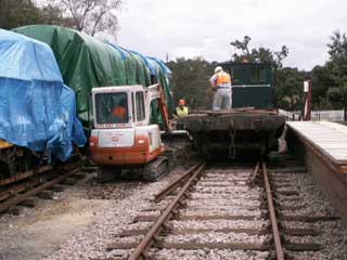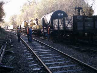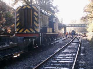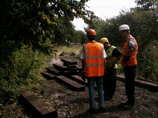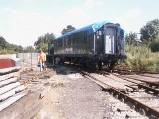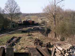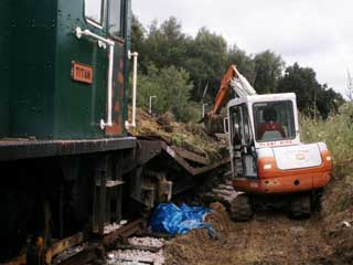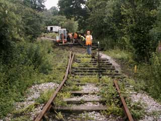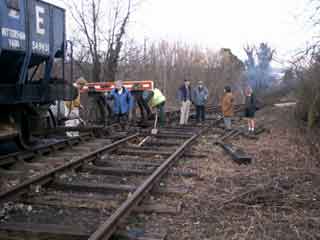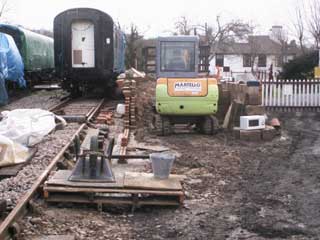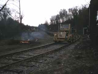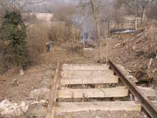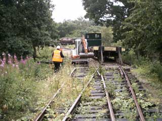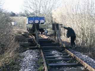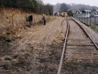 Sunday 18th January 2004 Work progressed on lineside clearance of embankments between Oak Tree sidings and towards 1st bridge. Buffer stops were cleared of vegetation and jacked up in preparation for being moved to new position at end of concrete sleepers.