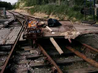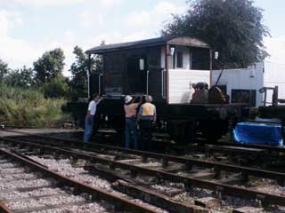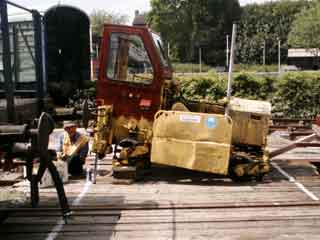 Wednesday 18 Aug Measured up Oak Tree point as reference for point sleepers required for station yard run round. Finished cleaning clay encrusted check rail chairs at Oak Tree. Tuesday 17 Aug Work on Tug - cleaning down / stripping old paint. Undercoating front 'bumper'. Sunday 15 Aug Started cleaning Clay encrusted check rail chairs at Oak Tree. Wednesday 11 Aug Titan serviced. Should see a few years service yet. Apparently not being used regularly or hard enough... Started riddling ballast near loading pad as part of clearing shoulder through this area. Some ballast nearly a third dirt before riddling! Sunday 8 Aug Finished trench for sleeper movement. Finished recovery of ballast, and filled many shoulders on p way. Brakevan painting and restoration continued. Tug - new alternator. Tightening of chair screws completed from yard to Oak Tree. Check rail chairs rearranged as far as Oak Tree, as were not all orientated the correct way round.