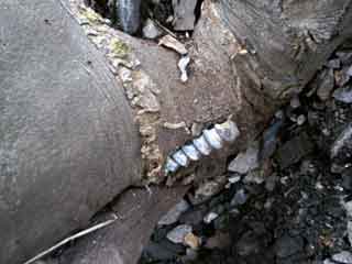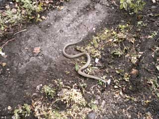 A grass snake evicted from its home under a sleeper! Saturday 3 July, loaded lomac twice with ballast with mini digger, and dumped in station yard as bed for second track movement to form part of run round loop.
