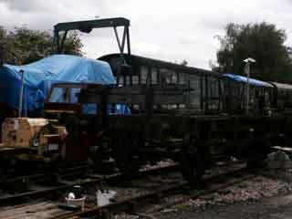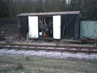 Unrelated mainline work - but the equipment would be handy for our project... Wednesday 26 May Restoration work on 3 plank wagon continuing. Limited clearance to help Mark Yonge gain access for spraying - although he had to abandon attempt today.