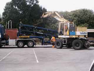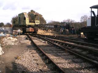 Just a jib and a paint job needed! The jib was attached by evening. Just re rigging to do. Sunday 14 Nov Not on site till evening. Instead four of us went over to Bluebell to see extension progress. Fantastic day, with a Wickham ride up to Kingscote, walk up (and over the tip!) over Imberhorne viaduct and into East Grinstead compound. Look round carriage and wagon and a walk down the Ardingly branch almost to the stub of the network rail line. Lots of steam trains flying about! A very useful dialogue with volunteers at the Bluebell - and thanks go to Jon Bowers and his colleagues - a wonderful day off! For Bluebell pictures go here On the way back home we dropped in at the RVR - crane had arrived and jib was on route. Thursday 11 Nov Several members went to Spa Valley to bring crane up from Groombridge to Tunbridge Wells West in preparation for its relocation to the RVR.