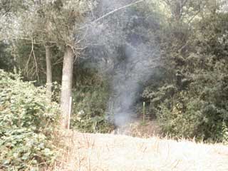 'driving' the Unimog. Sunday 14 March Washout! A small amount of clearance performed around 4th bridge, weather was constant drizzle, so had to give up after lunch. Tuesday 9 & Wednesday 10 March Huge blitz on clearance to North Bridge St. Now reached 4th bridge. Cleared a massive knot of ivy encrusted overgrowth around a downed tree at third bridge. It took most of Tuesday to cut, and Wednesday to burn! Latest total is a dozen cricket balls and a couple of golf balls which have been lost from the adjacent cricket pitch, some of unknown vintage.
