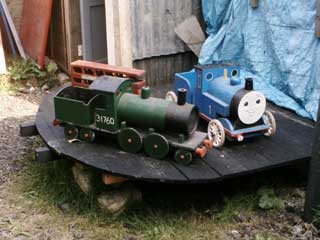 Thomas visits the RVR! Wednesday 1 Sep Progress made with point work. Webmaster not on site. Sunday 29 Aug Decision made to relay the point using interlacing as new hardwood point sleepers over £1000! Wednesday 25 Aug Clearing shoulder of ballast by near loading pad. Sunday 22 Aug New arrival from Ramsgate during the week (very early in the morning!) - 3 ex BR Banana Trucks, in good condition. One Will be used for mobile PW tool store. Jacking and packing near Oak Tree. Finished ballast shoulder top ups on concrete section between yard and loading pad.