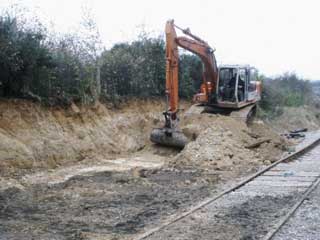 Bank and trackbank reprofiling after spoil removal, in preparation for laying second track...soon