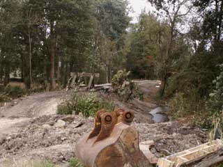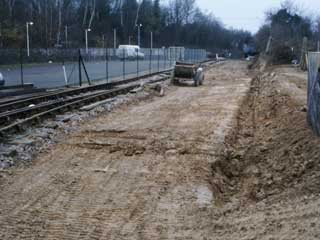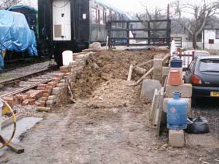 bank gone - now needs levelling through. Sunday 31 Oct - Sat 6 Nov Huge progress. The clay bank is being ripped out, and should be gone by the end of this week. Additionally since last date, the middle road into the station has been reinstated, progress made on the three plank, brake van and other numerous smaller engineering tasks forwarded.