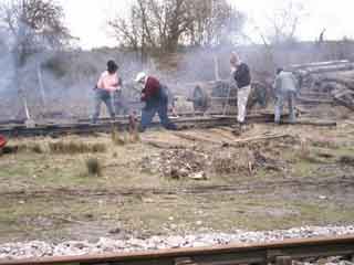 Retrieving broken pointwork for rebuild. Sunday 8th Feb You guessed it...more clearance! The embankments from Oak Tree sidings through to 1st bridge are rapidly being cleared now. Lots of fires necessary to clear the brush. Much damage inflicted on volunteers by rogue brambles!